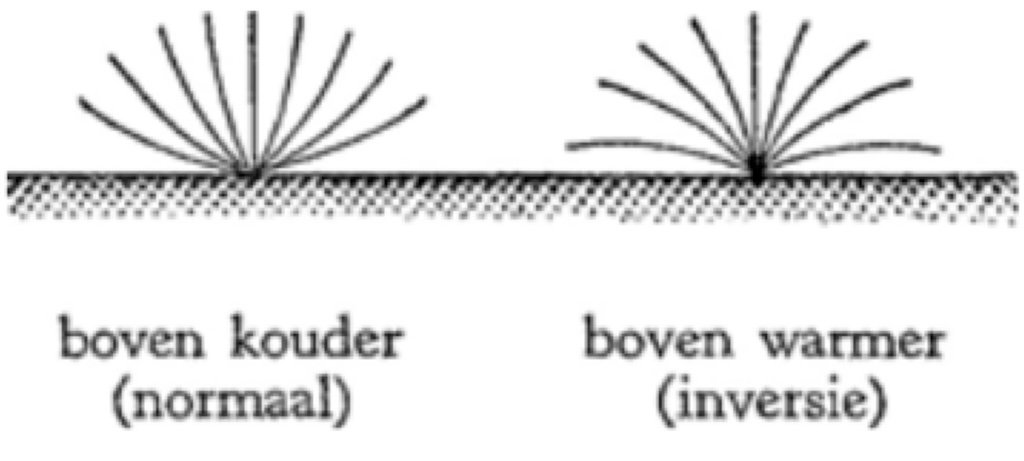 Figuur a. Buiging van geluidsgolven in de atmosfeer (Minnaert 1939: 13).