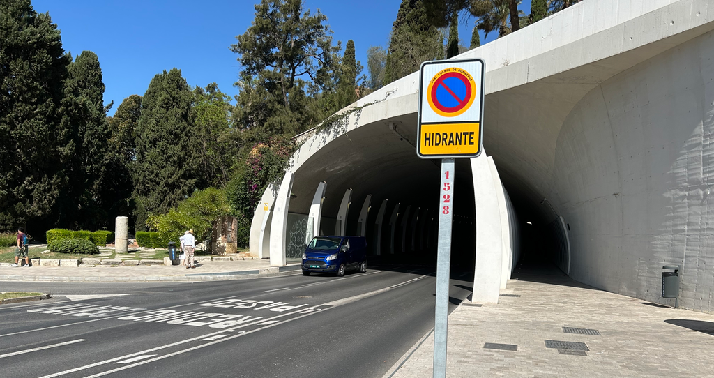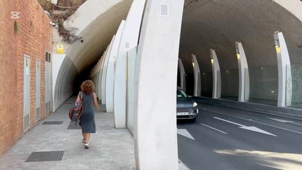 De zes fonteintjes aan de kant van de Paseo de Reding zijn vanuit de tunnel niet zicht- of hoorbaar. Eenmaal uit de tunnel, geven zij aan de voetgangers een extra auditieve dimensie naast het dominante verkeersgeluid.